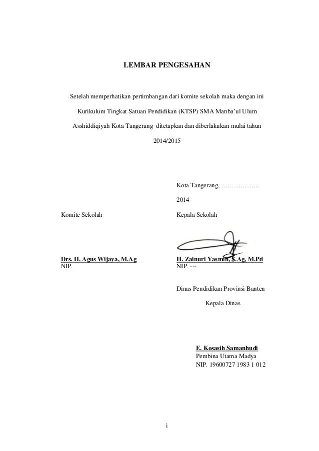 Pengesahan, Kata Pengantar, Daftar Isi (ktsp 1415) via slideshare.net